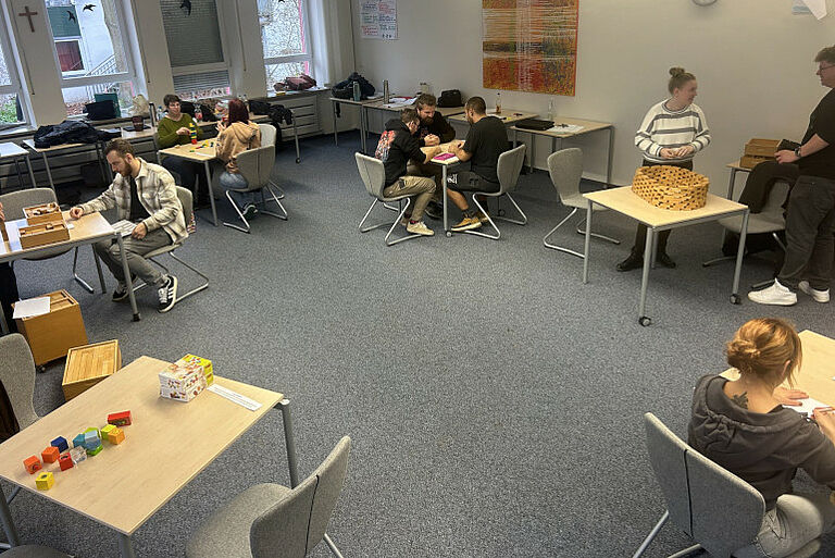 An sechs Stationen erprobte der Kurs verschiedene Möglichkeiten des Konstruktionsspiels.
