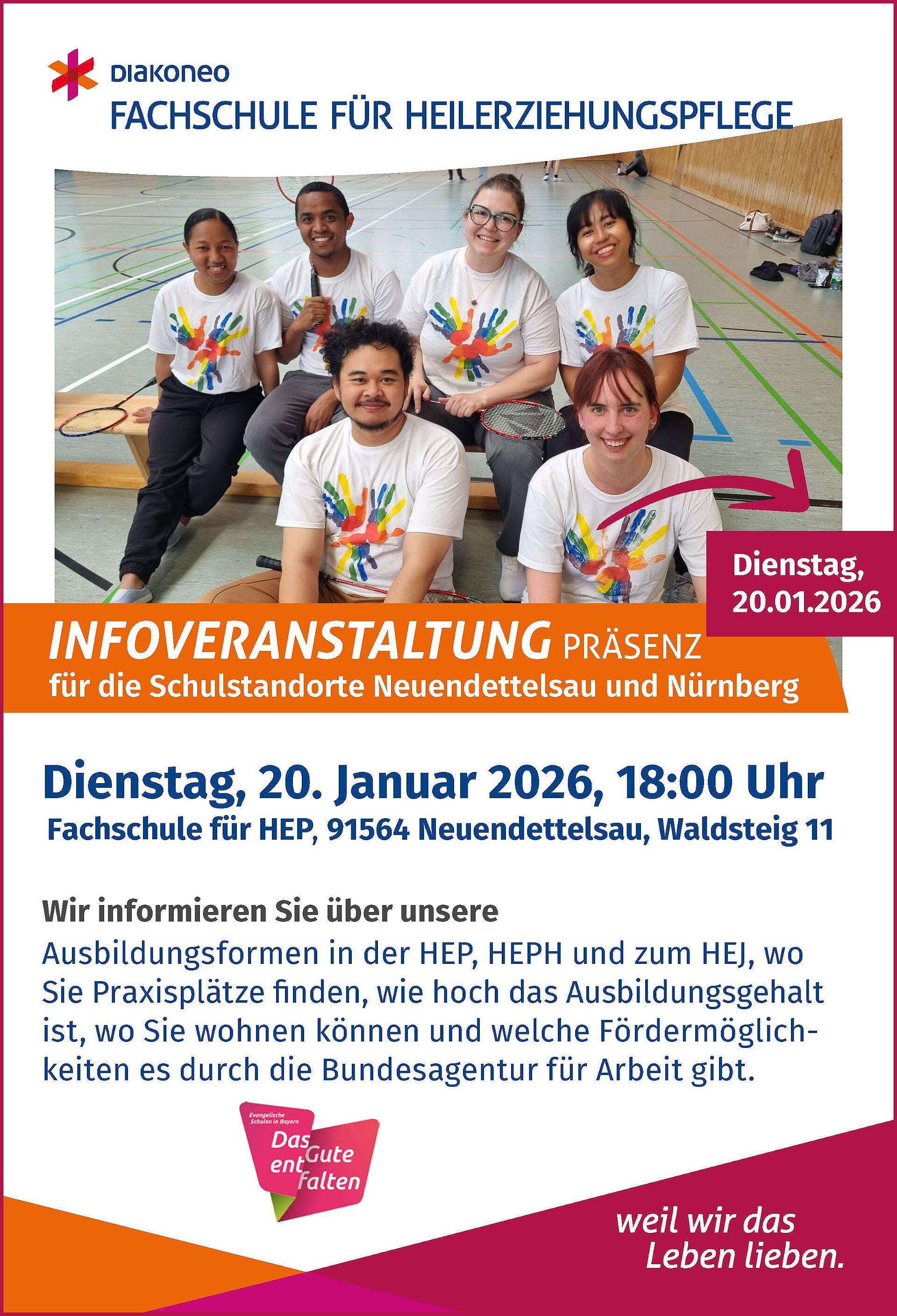 am Dienstag, den 20. Januar 2026 um 18:00 Uhr, Fachschule Heilerziehungspflege in Neuendettelsau, Waldsteig 11.